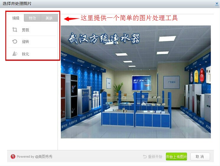 第一步:您可以先将自己的实体店铺拍一张清晰,效果较好的照片。然后打开进入门店设置,点击下图中的“上传图片”;