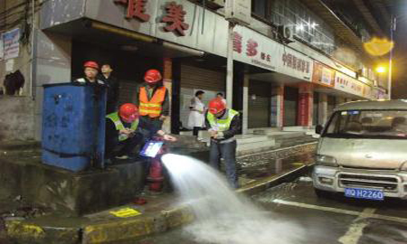“控制好放水开关,慢点。”昨日凌晨1点,华西城市读本记者来到自来水公司位于宜宾老城区洞子口的冲洗处,该公司副总经理任大庆正指挥工人打开消防栓放水。